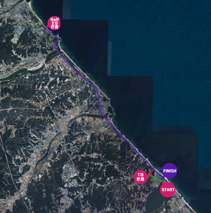 하지만 거리 측정에 문제가 있던 점이 있었는데, 실제 뛰어보니 공식 하프보다 2km가량 길었습니다.(공식 재실측결과 23.3km)