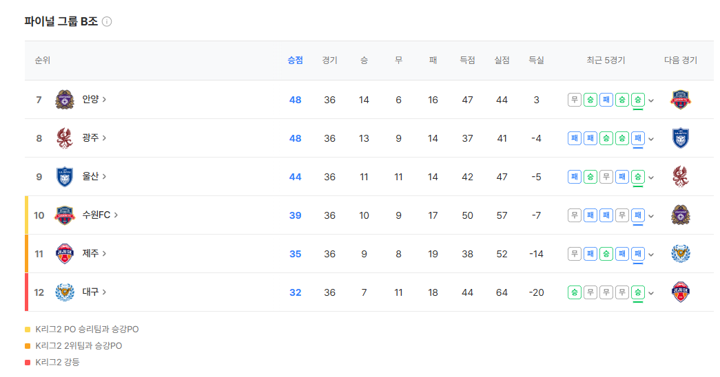 | [K리그1] 제주SK vs 대구FC, 운명을 건 ‘멸망전’…강등 피하려면 반드시 이겨야 한다! (0) | 2025.11.22 |