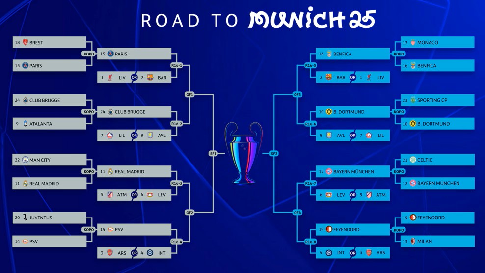 이로써 16강 팀 중 직행팀 8팀은 리버풀, FC 바르셀로나, 아스널, 인테르 밀란, 아틀레티코 마드리드, 레버쿠젠, 릴, 아스톤 빌라이며, 플레이오프에서 진출한 팀 8개는 도르트문트, 레알 마드리드, 바이에른 뮌헨, PSV 아인트호벤, PSG, 벤피카, 페예노르트, 클럽 브뤼헤가 확정되었습니다. 16강 경기 추첨은 21일(금) 20시(한국시각)에 예정되어 있습니다. 앞으로의 경기도 기대해보겠습니다.